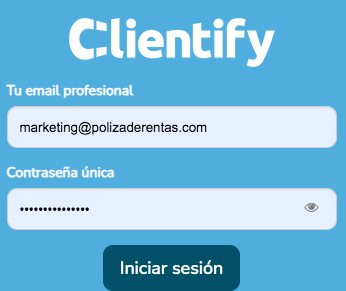 Inicia Sesión en clientify con las credenciales de Póliza de Rentas