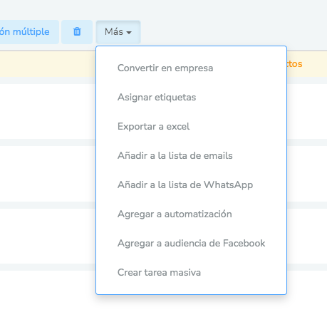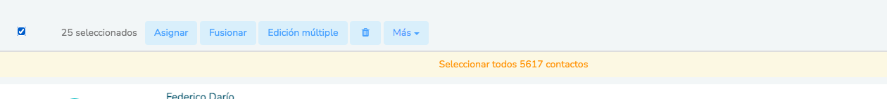 IMPORTANTE: Para seleccionar el total de contactos da clic en la franja amarilla